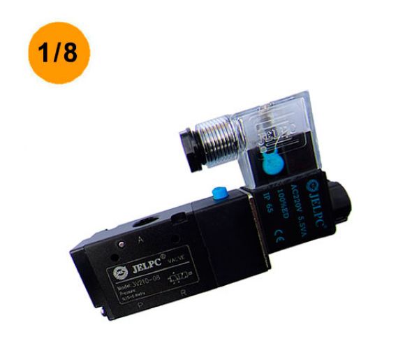 Válvula solenóide 3 vias 2 posições. Acionamento: solenóide . Retorno: mola.